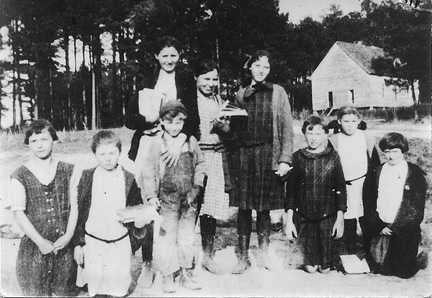 This picture was taken in the late 1910's. Left to right: Ollie Burdick Rivers, Eunice Wilson, Agnes Glen standing behind Joe Glen, Cleo Robinson, L.W. Wade, I.V. Burdick, Pauline Wilson, and Kate Speer Wilson; thanks to Robin Sterling for the picture.