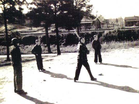 "Bobby Collins;" Railroad workers lived in the section houses from 1890-1955 (in background); photo courtesy of Kin Dodd.