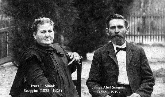Izora L. (Shank) Scogins (1853 - 1928) and James Abel Scogins (1845 - 1919). Scogins was in Captain Walden's Company B of the 2nd Battalion of Hilliard's Legion of Alabama Volunteers, CSA. Izora was daughter of John Shank, who died at Natural Bridge in 1896. Izora is a sister of Frances, who married Alexander M. Alford. Izora and James are buried at Pleasant Hill at Houston. Photo is courtesy of Robin Sterling.