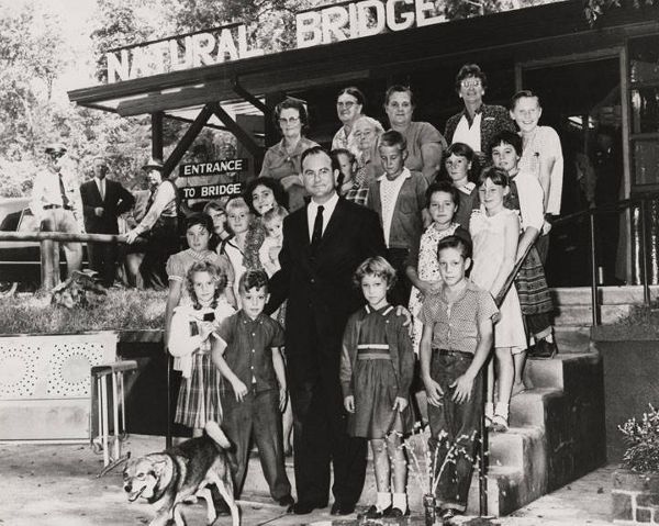 Natural Bridge School kids at Natural Bridge Park with Gov. John Patterson about 1960. Photo courtesy of Pete Parrish.