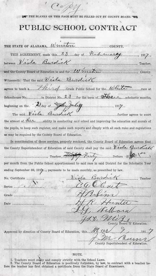 School Contract (Viola Burdick)
