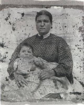 Carla did send me a copy of an old tin-type of Harriet. Her email said she looked through the trash at Great Aunt Ettie’s funeral, and recalled many old tin-types and other documents were just thrown away. She remembered Great Aunt Ettie saying this was her Grandma, Harriet, and our great grandma Josephine taken as a baby. So she saved this old photograph from the trash can and took it home with her.