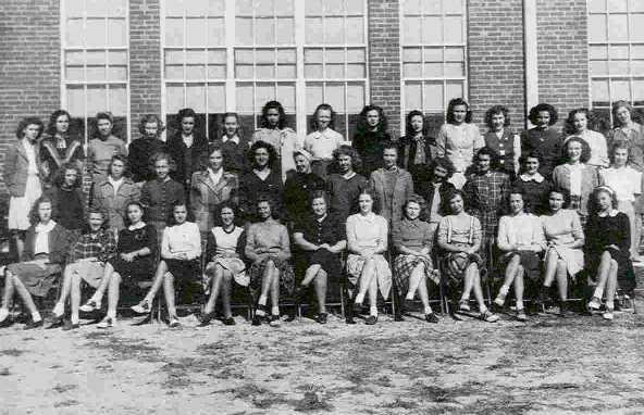 Row 2, left to right: Launa Lovett, Ethelene Aderholt, Vera Salter, Charlsie Mae Carter, Rosa Nell Harling, Betty Dillard, Betty Finley, Fay Fondren, Jean Camp, Martha Lou Arthur, Ann Taylor, Jean Little, and Harriett Colburn.