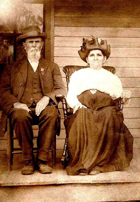 Jeremiah Burnett (08/14/1842-05/26/1929) Pvt Co. A 1st Al Inf Reg C.S.A and his wife Virgi Griffin Burnett (04/11/1847-02/01/1931). Date of the picture is unknown. Photo courtesy of Gerald Looney.