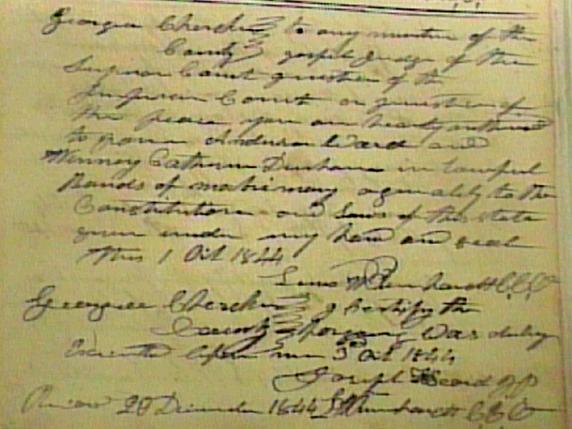 Anderson Ward & Mary Catherine Durham Marriage Certificate